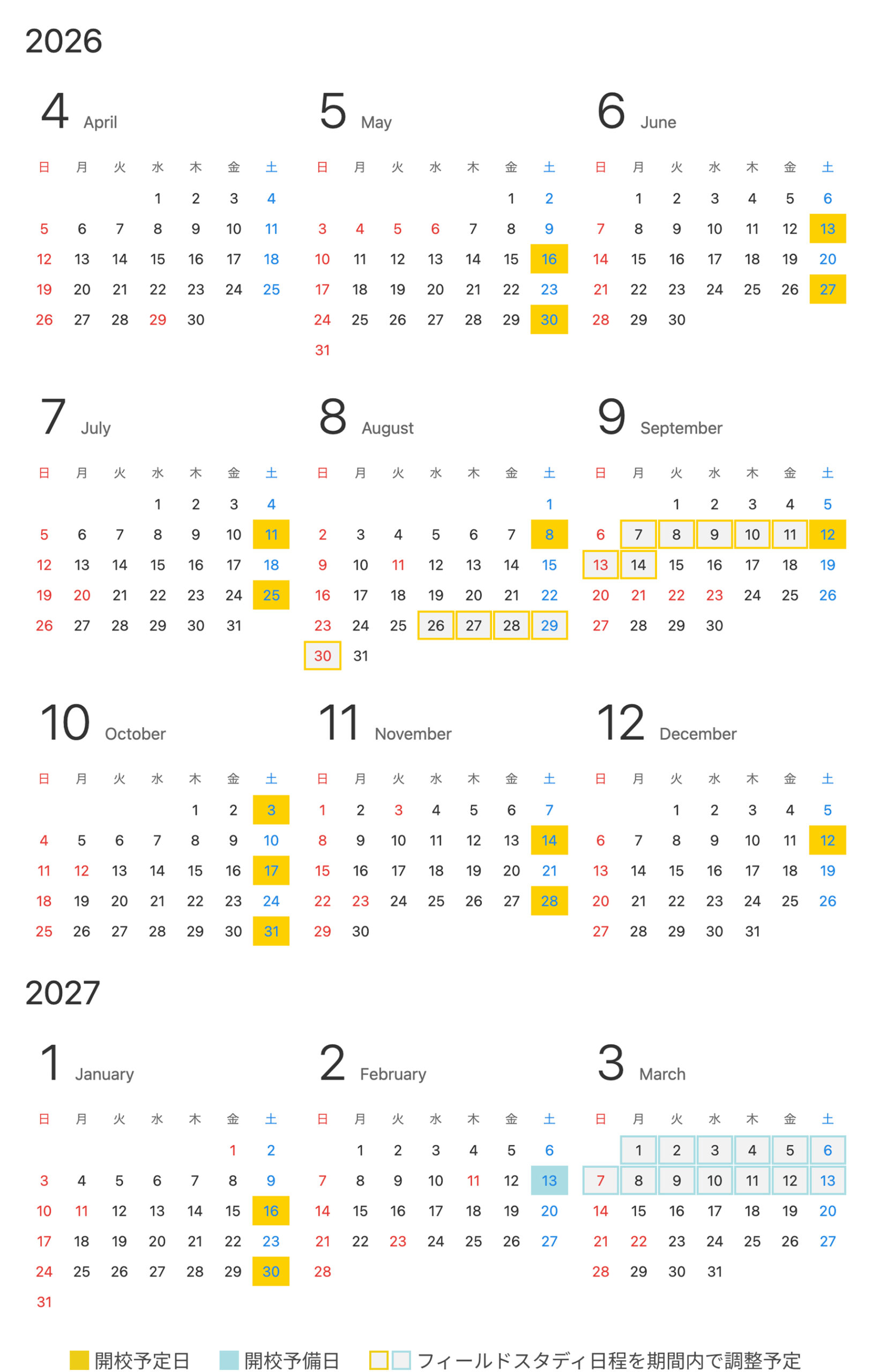 開講カレンダー